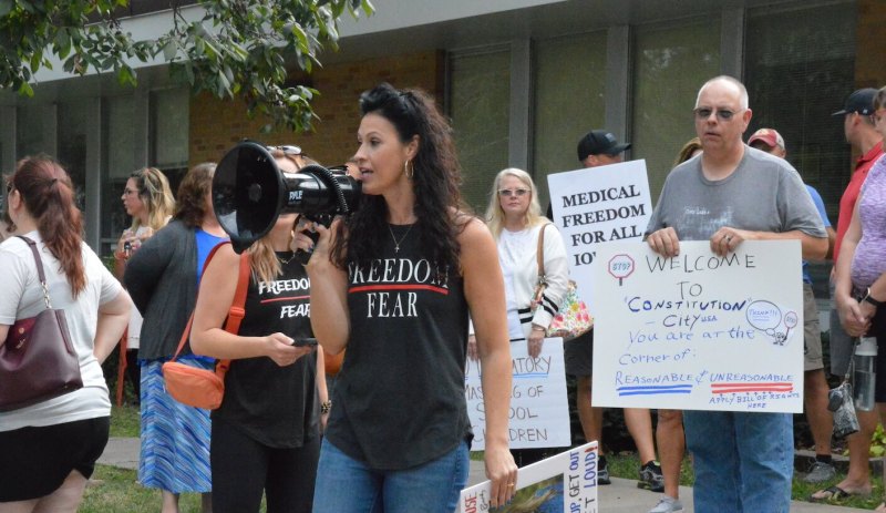 “Nobody here should comply and we should take our kids and we should pull them out of school if they mandate masks on them again,” Reicks said. “We will take their funding because my kid and your kids is not their paycheck; my kid is not for sale. My child is mine.”