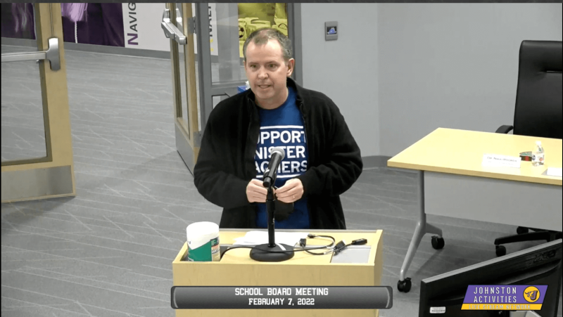 Ann Smith took the podium to read anonymous statements from teachers at Johnston who she knows.
