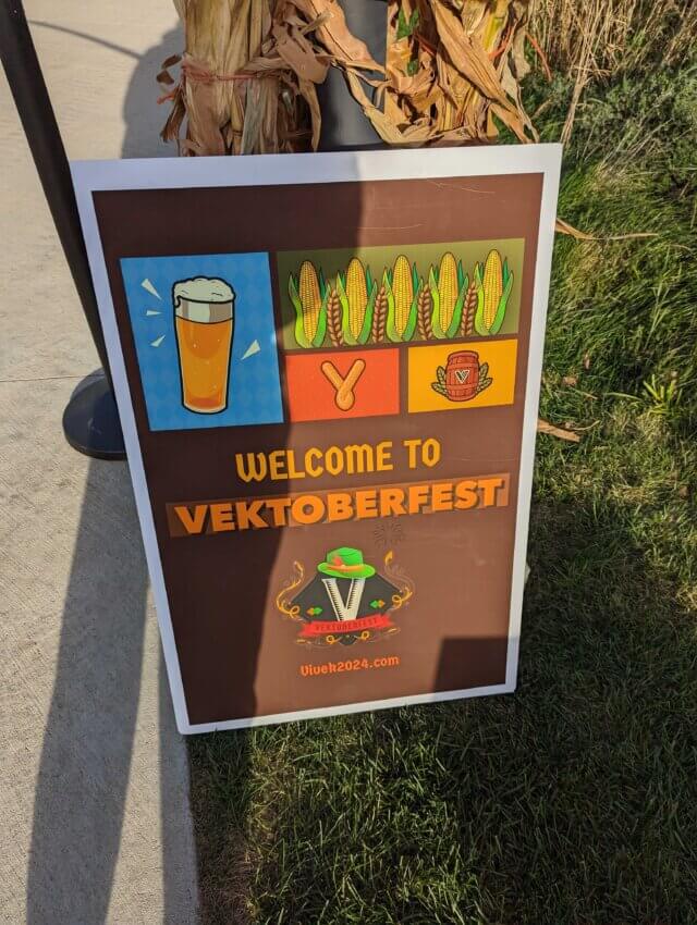 I followed the signs, checked in at the media table, and took a lap around the “Vektoberfest” grounds. I had to admit I was impressed with all the amenities. The entire area was decorated with hay stacks, pumpkins, and dried corn stalks. There were also a few “Vektoberfest” signs around to remind you of whose event this was.