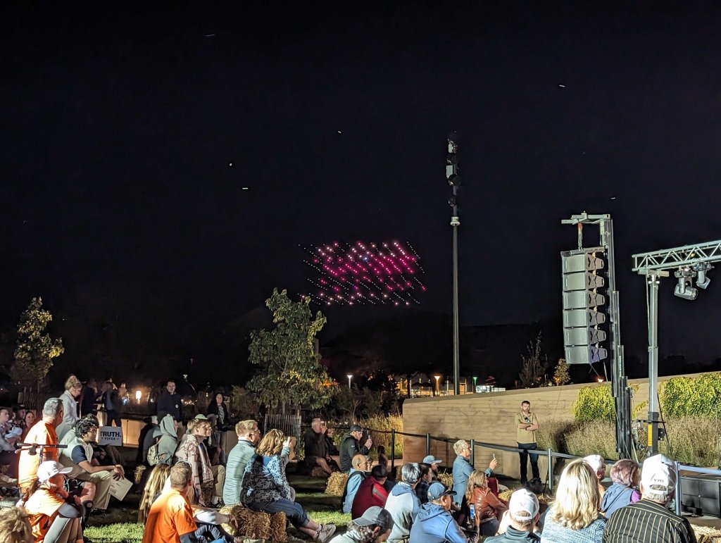 I can’t lie, I walked to my car smiling thinking about the absurdity of my job and politics as the drones above me created various images and phrases including Paul Revere, a John Deere tractor, and the Statue of Liberty.