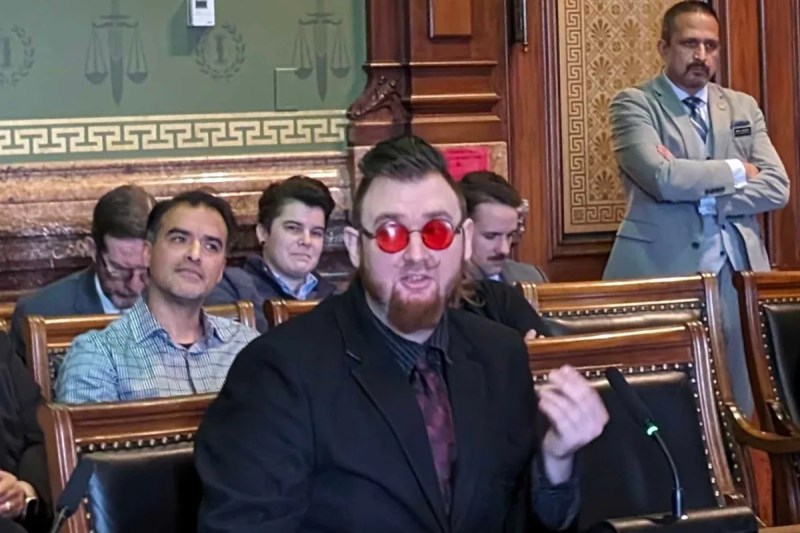 Dressed in all black with the exception of his red-tinted sunglasses and red tie, Satanic Temple Minister Mortimer Adramelech said he and his organization would welcome the opportunity to participate in Iowa’s public school chaplain program.