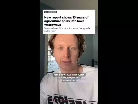 POLITICS VIDEO WATCH: How Iowa incentivizes ag spills into waterways Iowa Production Staff March 17, 2025 Copy link Timely reminder that Iowa’s water is bad and legislators aren’t doing anything about it! Video created: Mar. 17, 2025 Popular TRUMP Iowa Republicans back Trump as Maduro abduction risks war and regional instability POLITICS VIDEO WATCH: Iowa could be part of ‘America’s political comeback’ in 2026 POLITICS VIDEO WATCH: US Rep. Ashley Hinson voted to cut social security by $452 million STATE LEGISLATURE Top Iowa House Dem says his party will focus on affordability POLITICS VIDEO WATCH: No one tracks where Iowa’s factory farms dump manure, despite pollution concerns Follow Us Newest Videos Iowa Republicans back Trump as Maduro abduction risks war and regional instability WATCH: Iowa could be part of ‘America’s political comeback’ in 2026 WATCH: US Rep. Ashley Hinson voted to cut social security by $452 million Top Iowa House Dem says his party will focus on affordability WATCH: No one tracks where Iowa’s factory farms dump manure, despite pollution concerns