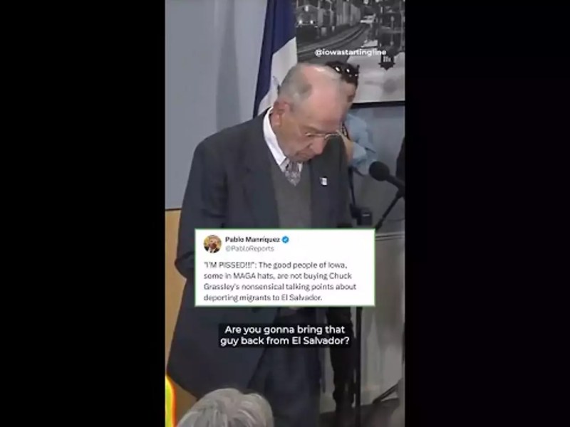 POLITICS VIDEO WATCH: Iowans grill US Sen. Chuck Grassley on Trump deportations Amie Rivers April 16, 2025 Copy link Are the checks and balances in the room with us??? Popular TRUMP Iowa Republicans back Trump as Maduro abduction risks war and regional instability POLITICS VIDEO WATCH: Iowa could be part of ‘America’s political comeback’ in 2026 POLITICS VIDEO WATCH: US Rep. Ashley Hinson voted to cut social security by $452 million STATE LEGISLATURE Top Iowa House Dem says his party will focus on affordability POLITICS VIDEO WATCH: No one tracks where Iowa’s factory farms dump manure, despite pollution concerns Follow Us Newest Videos Iowa Republicans back Trump as Maduro abduction risks war and regional instability WATCH: Iowa could be part of ‘America’s political comeback’ in 2026 WATCH: US Rep. Ashley Hinson voted to cut social security by $452 million Top Iowa House Dem says his party will focus on affordability WATCH: No one tracks where Iowa’s factory farms dump manure, despite pollution concerns