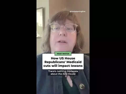 POLITICS VIDEO WATCH: How US House Republicans’ Medicaid cuts will impact Iowans Amie Rivers May 22, 2025 Copy link US House Republicans are pushing for major Medicaid cuts. Anne Discher, executive director of Common Good Iowa, explains how that will impact Iowa. Popular TRUMP Iowa Republicans back Trump as Maduro abduction risks war and regional instability POLITICS VIDEO WATCH: Iowa could be part of ‘America’s political comeback’ in 2026 POLITICS VIDEO WATCH: US Rep. Ashley Hinson voted to cut social security by $452 million STATE LEGISLATURE Top Iowa House Dem says his party will focus on affordability POLITICS VIDEO WATCH: No one tracks where Iowa’s factory farms dump manure, despite pollution concerns Follow Us Newest Videos Iowa Republicans back Trump as Maduro abduction risks war and regional instability WATCH: Iowa could be part of ‘America’s political comeback’ in 2026 WATCH: US Rep. Ashley Hinson voted to cut social security by $452 million Top Iowa House Dem says his party will focus on affordability WATCH: No one tracks where Iowa’s factory farms dump manure, despite pollution concerns