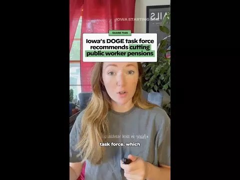 POLITICS VIDEO WATCH: Iowa’s DOGE task force recommends cutting public worker pension IPERS Iowa Production Staff August 14, 2025 Copy link Iowa’s DOGE task force just released 45 recommendations for the state government. Unsurprisingly, they want to cut more social services, including IPERS. Popular TRUMP Iowa Republicans back Trump as Maduro abduction risks war and regional instability POLITICS VIDEO WATCH: Iowa could be part of ‘America’s political comeback’ in 2026 POLITICS VIDEO WATCH: US Rep. Ashley Hinson voted to cut social security by $452 million STATE LEGISLATURE Top Iowa House Dem says his party will focus on affordability POLITICS VIDEO WATCH: No one tracks where Iowa’s factory farms dump manure, despite pollution concerns Follow Us Newest Videos Iowa Republicans back Trump as Maduro abduction risks war and regional instability WATCH: Iowa could be part of ‘America’s political comeback’ in 2026 WATCH: US Rep. Ashley Hinson voted to cut social security by $452 million Top Iowa House Dem says his party will focus on affordability WATCH: No one tracks where Iowa’s factory farms dump manure, despite pollution concerns