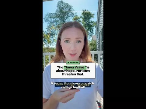 POLITICS VIDEO WATCH: The “Iowa Wave” is about hope. NIH cuts threaten that. Iowa Production Staff October 9, 2025 Copy link The Trump administration has cut $2.7 billion from NIH funding, canceling hundreds of research grants nationwide. These cuts will slow cancer research, limit access to lifesaving care, and weaken Iowa’s ability to respond to those in need. Popular TRUMP Iowa Republicans back Trump as Maduro abduction risks war and regional instability POLITICS VIDEO WATCH: Iowa could be part of ‘America’s political comeback’ in 2026 POLITICS VIDEO WATCH: US Rep. Ashley Hinson voted to cut social security by $452 million STATE LEGISLATURE Top Iowa House Dem says his party will focus on affordability POLITICS VIDEO WATCH: No one tracks where Iowa’s factory farms dump manure, despite pollution concerns Follow Us Newest Videos Iowa Republicans back Trump as Maduro abduction risks war and regional instability WATCH: Iowa could be part of ‘America’s political comeback’ in 2026 WATCH: US Rep. Ashley Hinson voted to cut social security by $452 million Top Iowa House Dem says his party will focus on affordability WATCH: No one tracks where Iowa’s factory farms dump manure, despite pollution concerns
