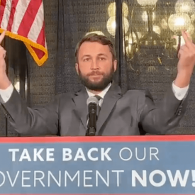 Rep. Bobby Kaufmann let his fingers do the talking Tuesday. The 36-year-old Republican from Wilton flipped off those who dare to have different beliefs than him while attending a rally held by the Convention of States in the rotunda of the Iowa Capitol Building in Des Moines. The group–which is funded by billionaire conservative Robert…