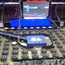 Setting up for the largest Iowa Democratic event to date was not unlike preparing for a theater production. There’s a backstage, a wing, green rooms, changing rooms and, of course, the big stage where 14 presidential candidates will stand before an audience of more than 13,000. “It took 63 people and 24 hours to get…