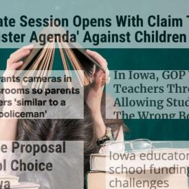 There were more than 50 education bills introduced during this year’s Iowa legislative session, including proposals to place surveillance cameras in public school classrooms, ban books, jail teachers, and take funding away from public schools to support private institutions. Republican lawmakers, who have introduced the bulk of these policies, have done so under the guises…