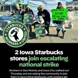 2 Iowa Starbucks stores join escalating national strike, and more Iowa Worker’s Almanac news and layoffs