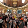 About every two minutes, the crowd would roar, stomp their feet, raise their voices, ring bells, and chant at the top of their lungs: “Separate but equal, that’s really fucking evil.” “We will not go back.” “Trans rights are human rights.” “No LGB with the T.” Hundreds of Iowans gathered in the Capitol Rotunda on…