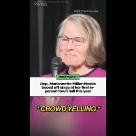 Iowa Rep. Mariannette Miller Meeks’ first in-person town hall all year probably didn’t go as she had hoped. Miller-Meeks was booed when she blamed the Biden administration for farmers’ current struggles. She also said she supports the Trump administration’s tariffs, which have strained farmers. Follow @iowastartingline for more.