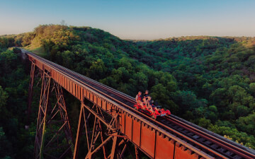 And with the addition of a new attraction, Rail Explorers, you can take in the scenery from a new perspective. The scenic valley trail is 12.5 miles through open farmland and across the Des Moines River, which you pedal over on the open-air rail bike for a thrilling experience of the Iowa countryside.