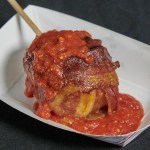 Proving that “gluten-free” doesn’t have to mean “healthy,” the Grinder Ball ($6.50, The Bacon Box) is bacon balls, wrapped in bacon, and rotisserie smoked on a stick instead of batter fried (making it gluten-free).