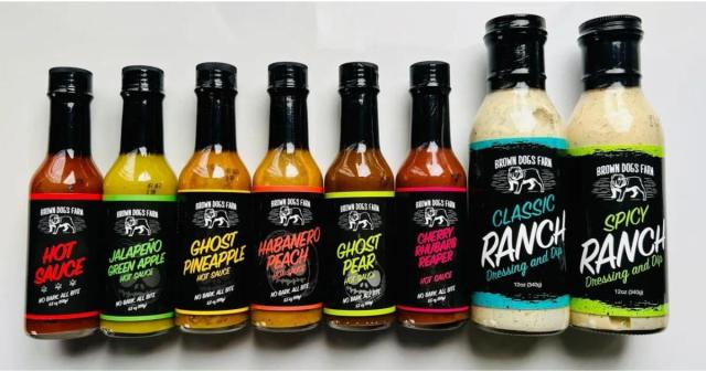 Brown Dogs Farm makes a variety of hot sauces. Its most popular flavors are Ghost Pineapple, Habanero Peach, and Ghost Pear. Brown Dogs Farm’s standard hot sauce, which released in April of last year, is also rapidly gaining fans, according to Robb.