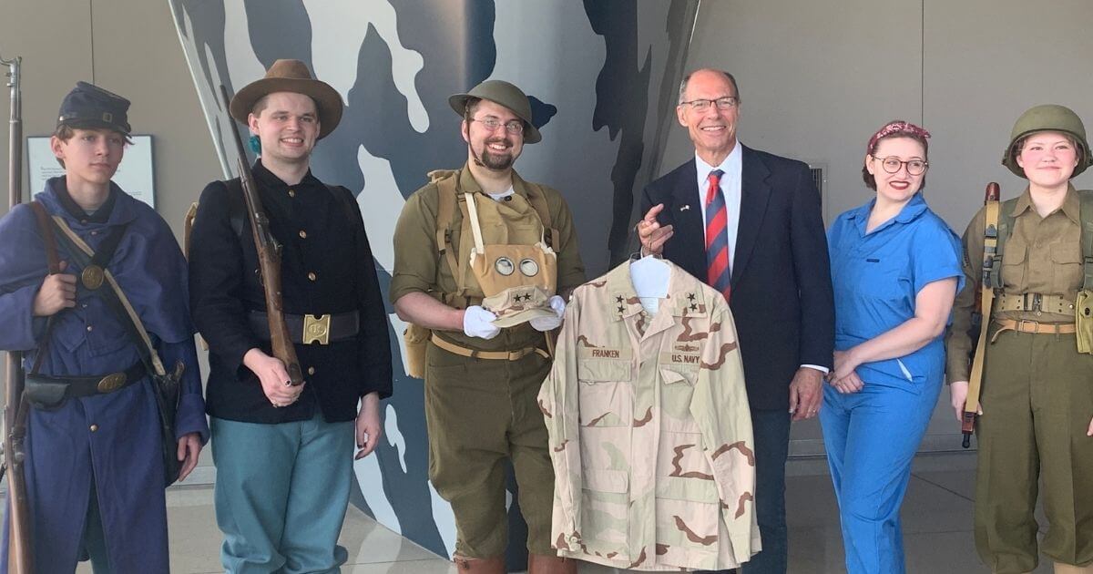 In Waterloo on Monday, Franken donated one of his former military camouflage uniforms to the Sullivan Brothers Iowa Veterans Museum in Waterloo, noting it was one of several he was planning to donate to Iowa museums.