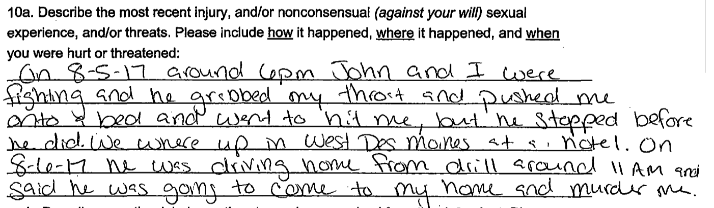 “Right now in Iowa, we don’t have any next steps other than smacking them [abusers] with a violation of the no-contact order. And, if I tell you the truth about that, it doesn’t really mean anything most of the time,” she said.