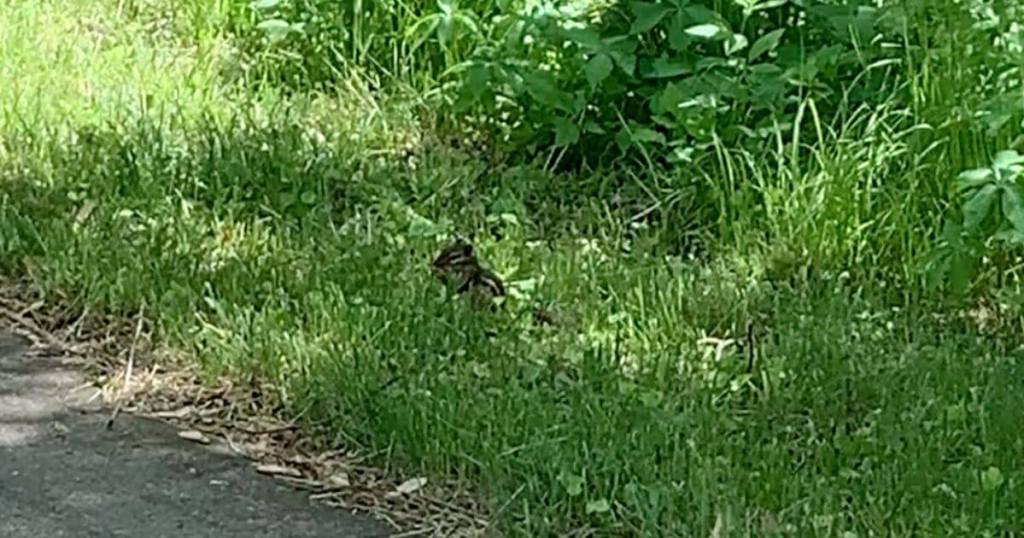 Two white-tailed deer stopped to get a glimpse of us, three chipmunks passed us on the paved trail, vultures and big eagles flapped their wings on high tree branches, two red-eared slider turtles sunned themselves on a lake log, and another larger turtle waded underneath one of the spillways. Can’t forget to mention the Canada geese and other birds flying or walking about.