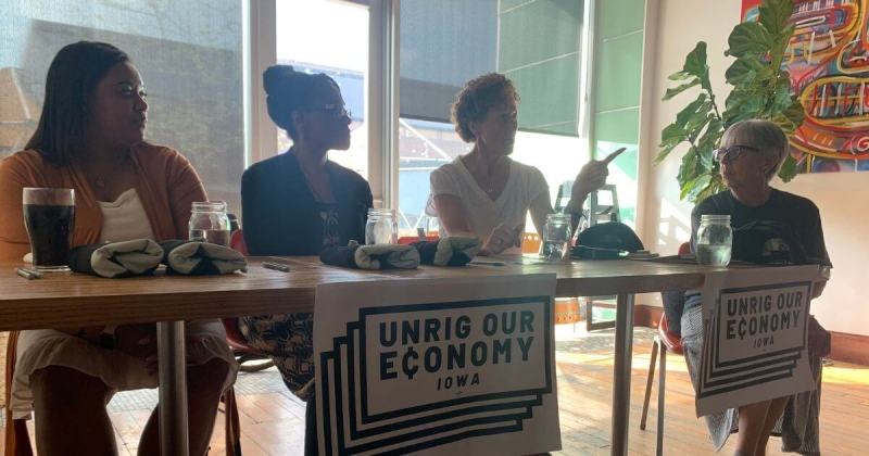 “Lack of wealth and access to capital limits the ability of women and people of color, and those with disabilities, to become entrepreneurs or take risks,” said Sue Dinsdale, executive director of the Iowa Citizens Action Network, which hosted the discussion.