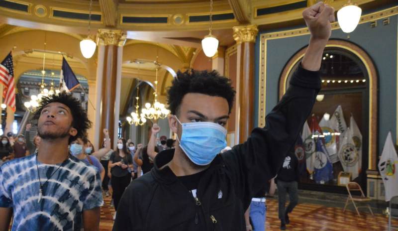 The protesters went into the meeting focused on the executive order demand after the Statehouse swiftly passed last night an initial series of police reform measures.
