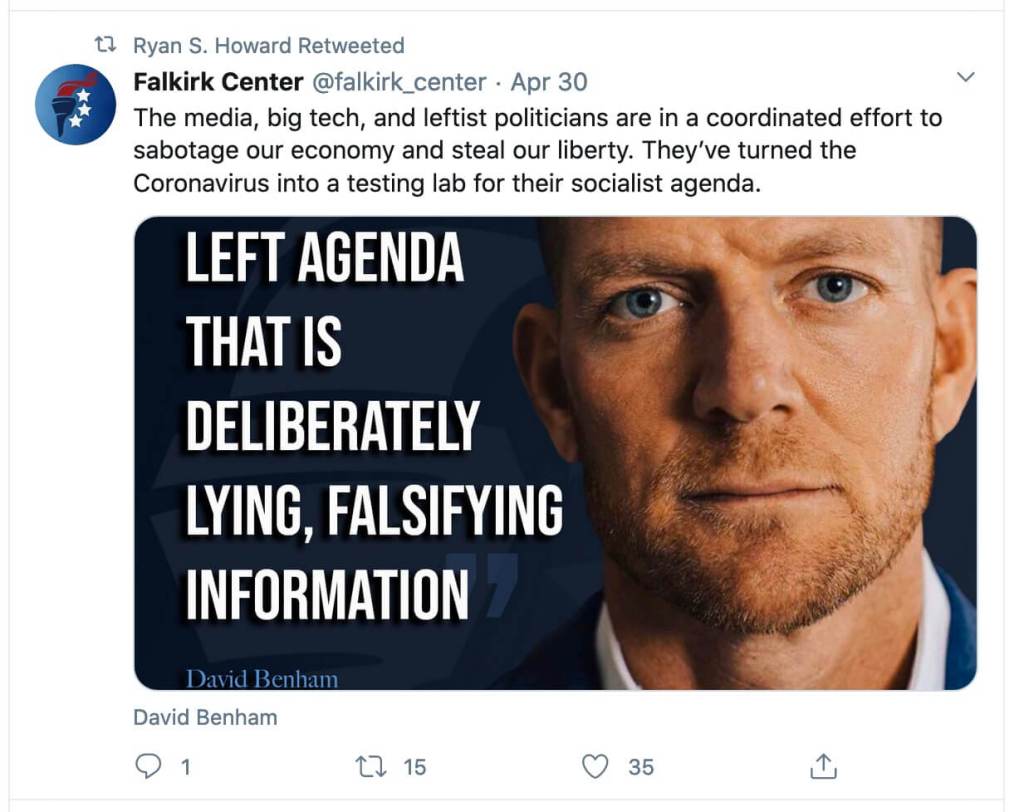 On Howard’s Twitter feed, he has retweeted conspiracy theories about the virus and seems to follow a collection of far-right commentators.