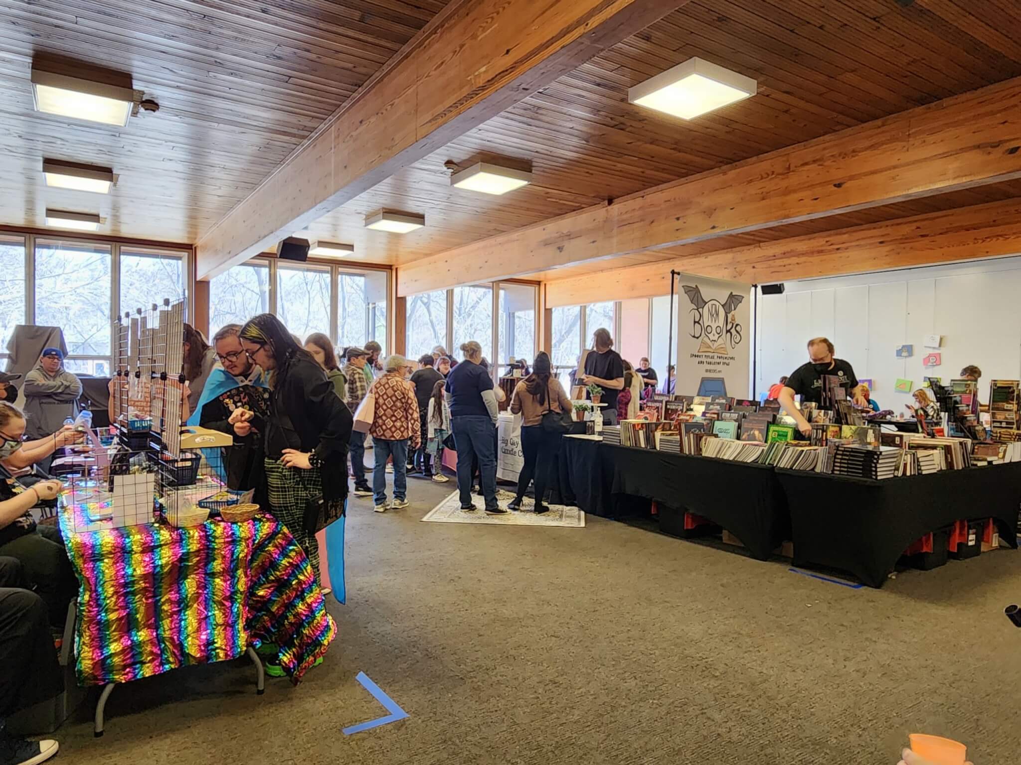 Festival attendees browsing in one of the art halls. Photo by Starting Line staff