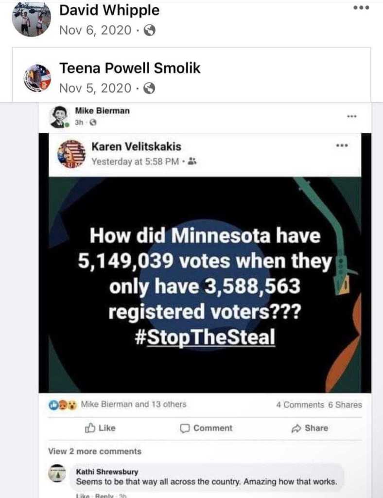 In a text message, Whipple told the Des Moines Register “…those posts look familiar. However, in 2020, I was an American citizen not thinking about being auditor and like many American citizens I was concerned with the integrity of elections.”