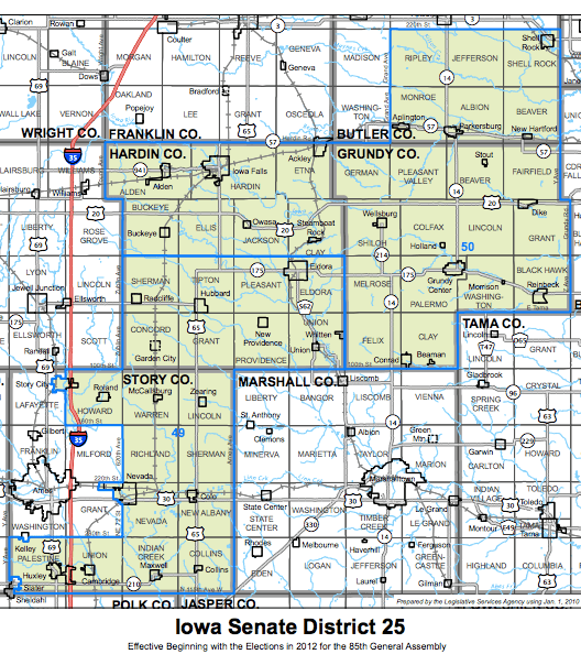 Senate District 25 covers all of Hardin and Grundy counties, as well as parts of Butler and Story counties. A Democratic upset here will not be easy. Registered Republicans outnumber registered Democrats here by about two-to-one, with 16,275 Republicans, 8,258 Democrats and another 15,054 No Party voters. Donald Trump carried the district 60% to 34%. Mitt Romney won it 54% to 45% in 2012.