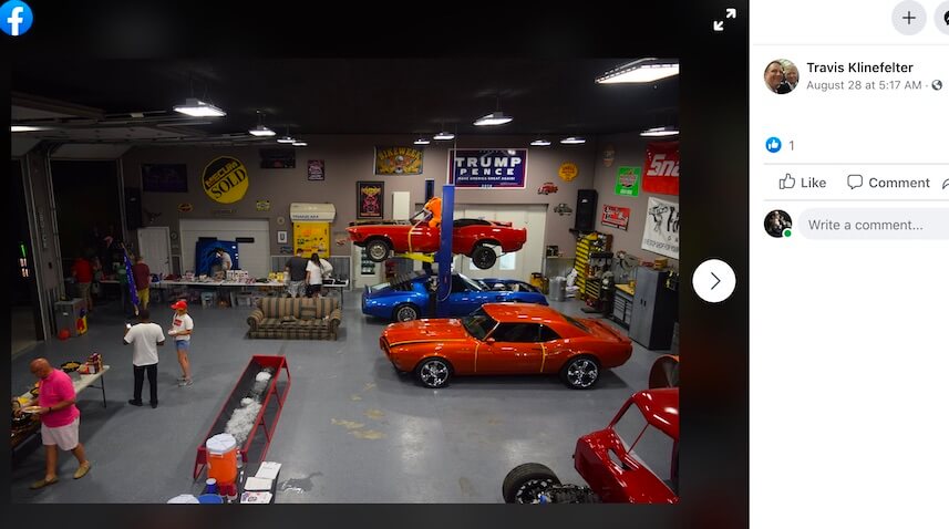Videos and photos seem to show a crowd of about 100 people attending the Trump campaign’s party to watch the President’s acceptance speech during the RNC convention. It was held at Farm Boy Garage, a body shop on the south side of Des Moines.