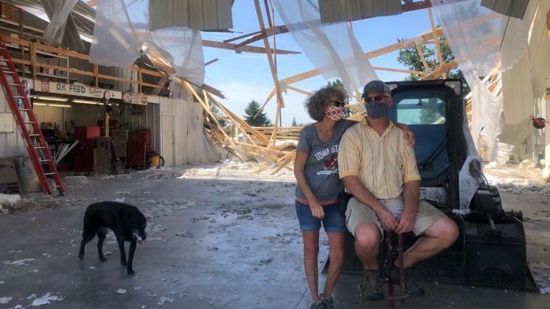 Someone who’s made the family’s bins said they’d likely get more in October, without promising anything. Some of the town elevators have told farmers they’d still take grain, but put it in a pile outside because they’ve lost their bins too. And the family also worries about cleaning everything up without help from their fellow farmers, who have their own destruction to attend to.