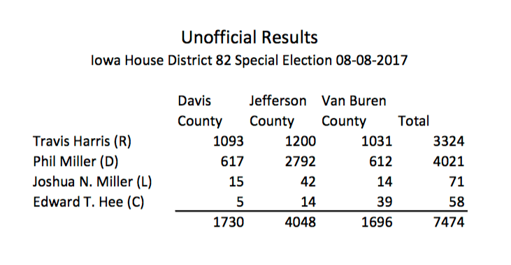 Phil Miller wins Jefferson County 2,792 to Harris' 1,200 #IAlegis pic.twitter.com/ifkQswZmCQ