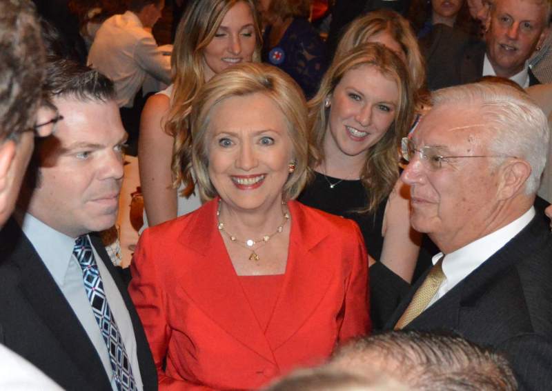 Hillary HOF RallyClinton held a pre-rally a few blocks away from the convention center before the main event started, and a thank-you session with a smaller group of staff and volunteers at a pizza place earlier in the day. About 250 came out to the pre-rally, some of which hadn’t been able to get tickets to the Hall of Fame Dinner. That turnout seemed a bit low, and is something to keep an eye on. Although, if people attended some of these pre-events around 3:00 and then the dinner, they would have been committing a full seven hours of a day.