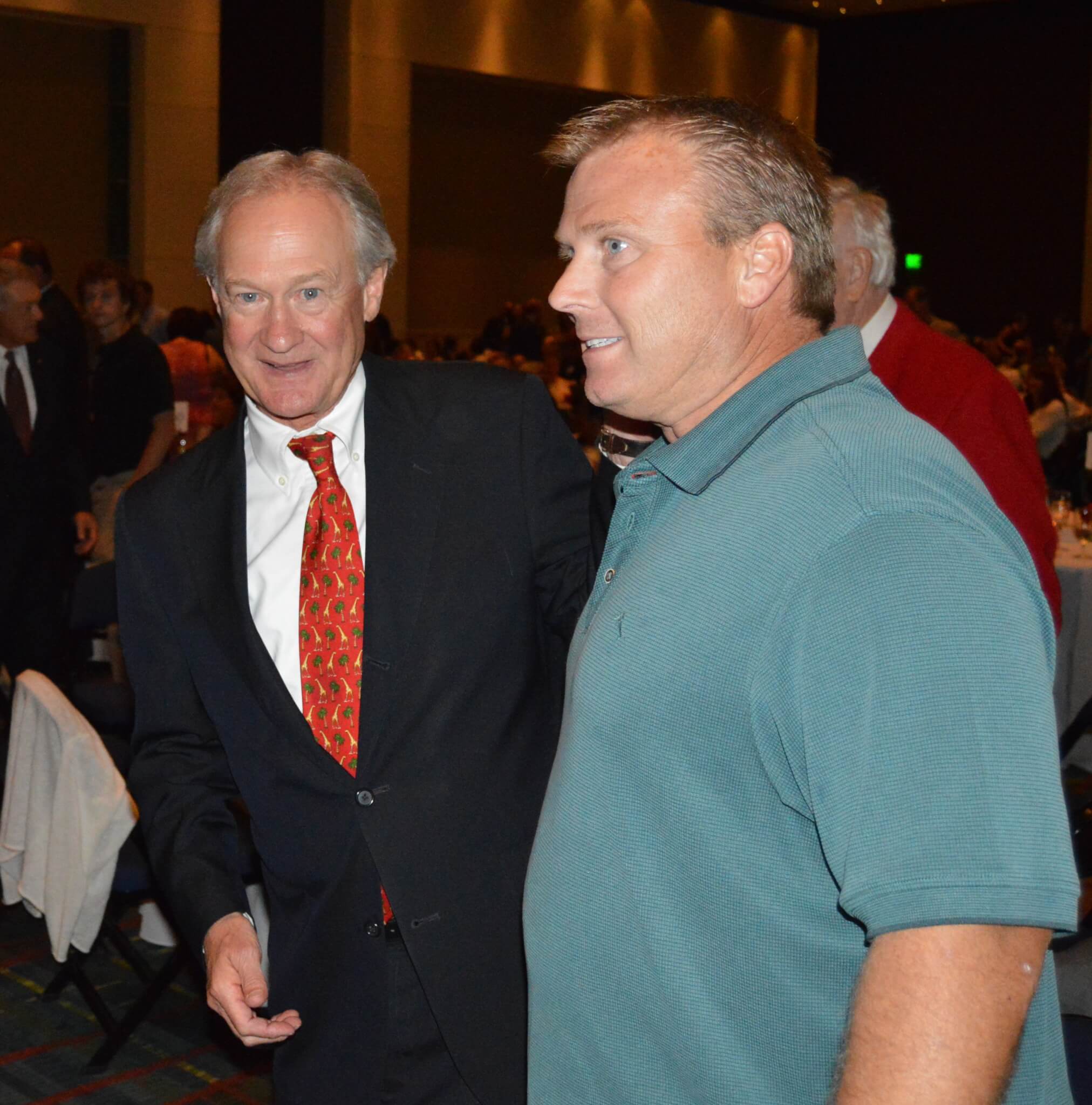 “We have a choice in 2016: prosperity through peLincoln Chafee HOFace or endless war,” Chafee said, thanking President Obama for the recent Iran deal. He stayed on the topic of foreign policy for a while, promoting diplomatic cooperation, and highlighted his resume on international affairs.
