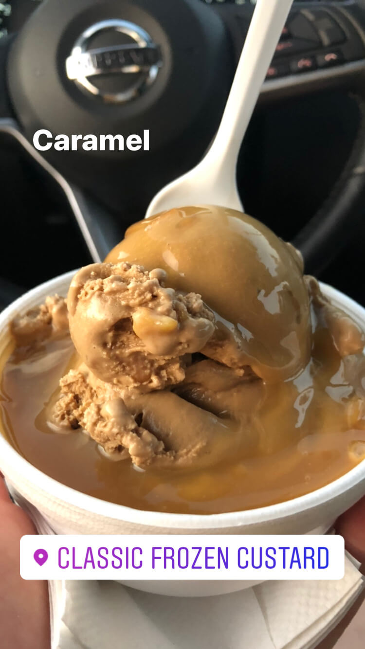 If you like caramel, I recommend this ice cream. Caramel oozes over all the caramel cashew custard. The softness of the custard is accompanied by the crunch of the cashew providing a delightful dessert. The caramel spread on top is the perfect amount of thick and sticky. Block off time because the thickness of the custard makes the eating process longer.