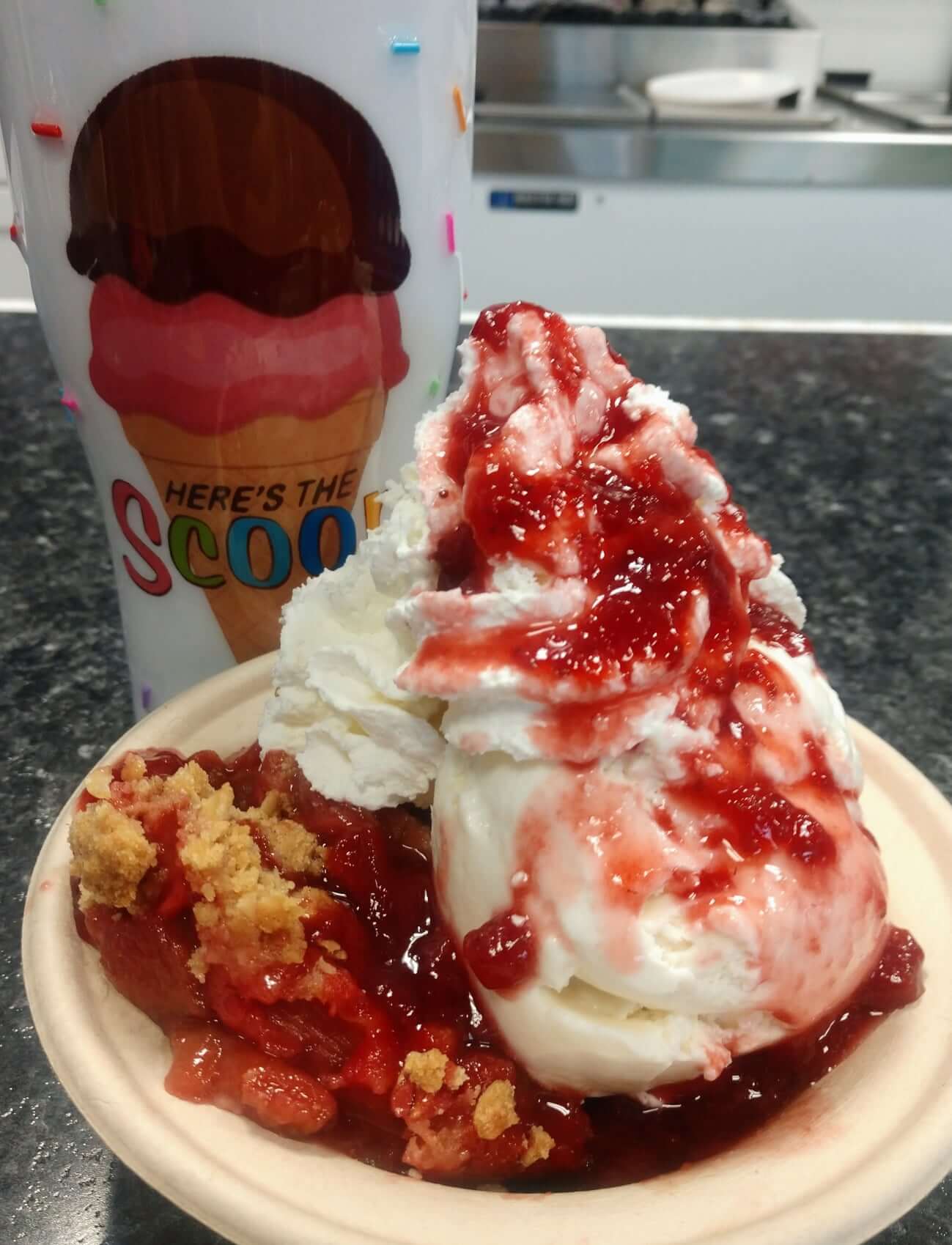 Strawberry Rhubarb Crisp Sundae. Photo from Here’s The Scoop Facebook page