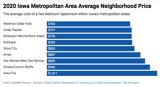 Booker’s plan capped the tax credit at neighborhood fair market rent. In Iowa, a two-bedroom apartment at fair market price averages $900 per month in Des Moines, $1,011 in Iowa City or $535 per month in Benton County, according to U.S. Department of Housing and Urban Development data.