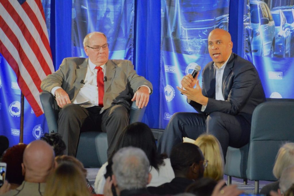 “When you say infrastructure, everybody knows that means more than roads, bridges, rail systems,” Booker said. His infrastructure plan would be wide enough to include aspects like environmental justice and broadband access. It will get done by putting together teams of experts, he said, with access to a greater number of federal tools.