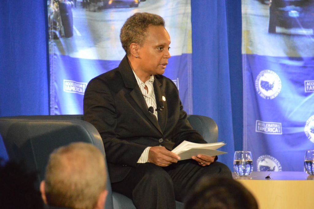 After taking office last May, Chicago Mayor Lori Lightfoot has since dealt with issues of homelessness, economic inequality and violence, and spent her time on stage talking with Pete Buttigieg about the same problems.