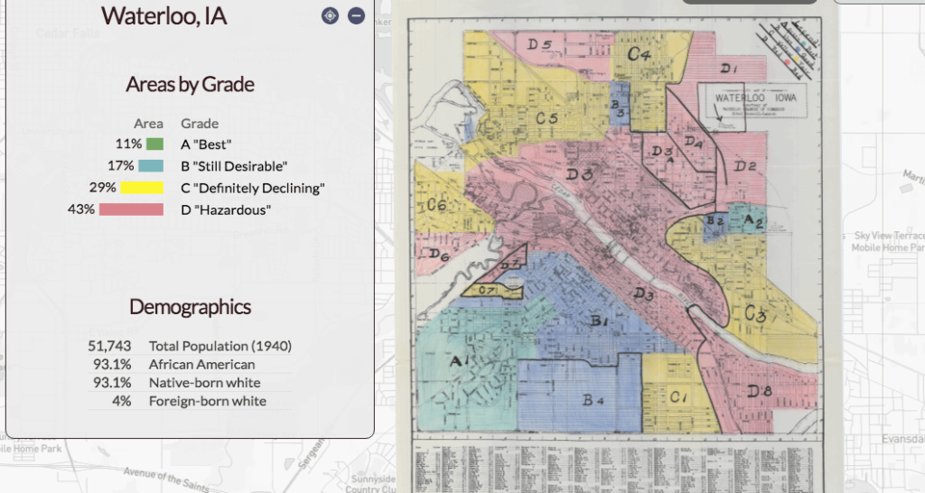 A recent project by the University of Richmond, “Mapping Inequity: Redlining in New Deal America,” is a digital collection of maps and descriptions the federal Home Owners’ Loan Corporation produced between 1935 and 1940. It shows the historical housing inequity in Waterloo.