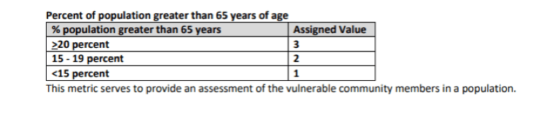 Percent of population greater than 65 years of age – Score of 2