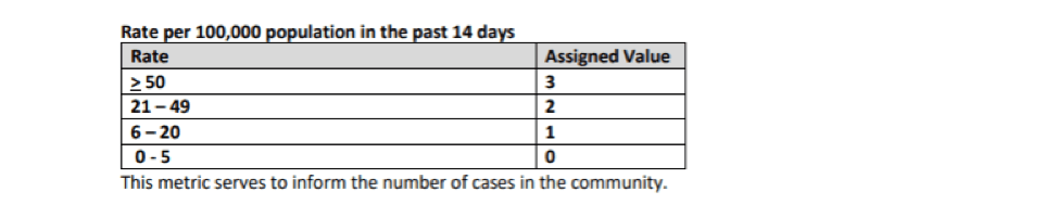 • Rate of positive cases per 100,000 population in the past 14 days