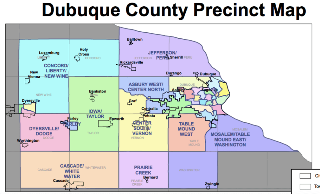 Precinct 12 is north of downtown, Precinct 1 is south – both have large trailer park complexes in them. Precinct 2 and 20 are just south of Highway 20 – both have higher-income neighborhoods. Precinct 20 contains the older, fancier houses of old Dubuque, while Precinct 2 has more new developments. Many of the city’s college professors live in Precinct 2, while many nuns live in Precinct 20.