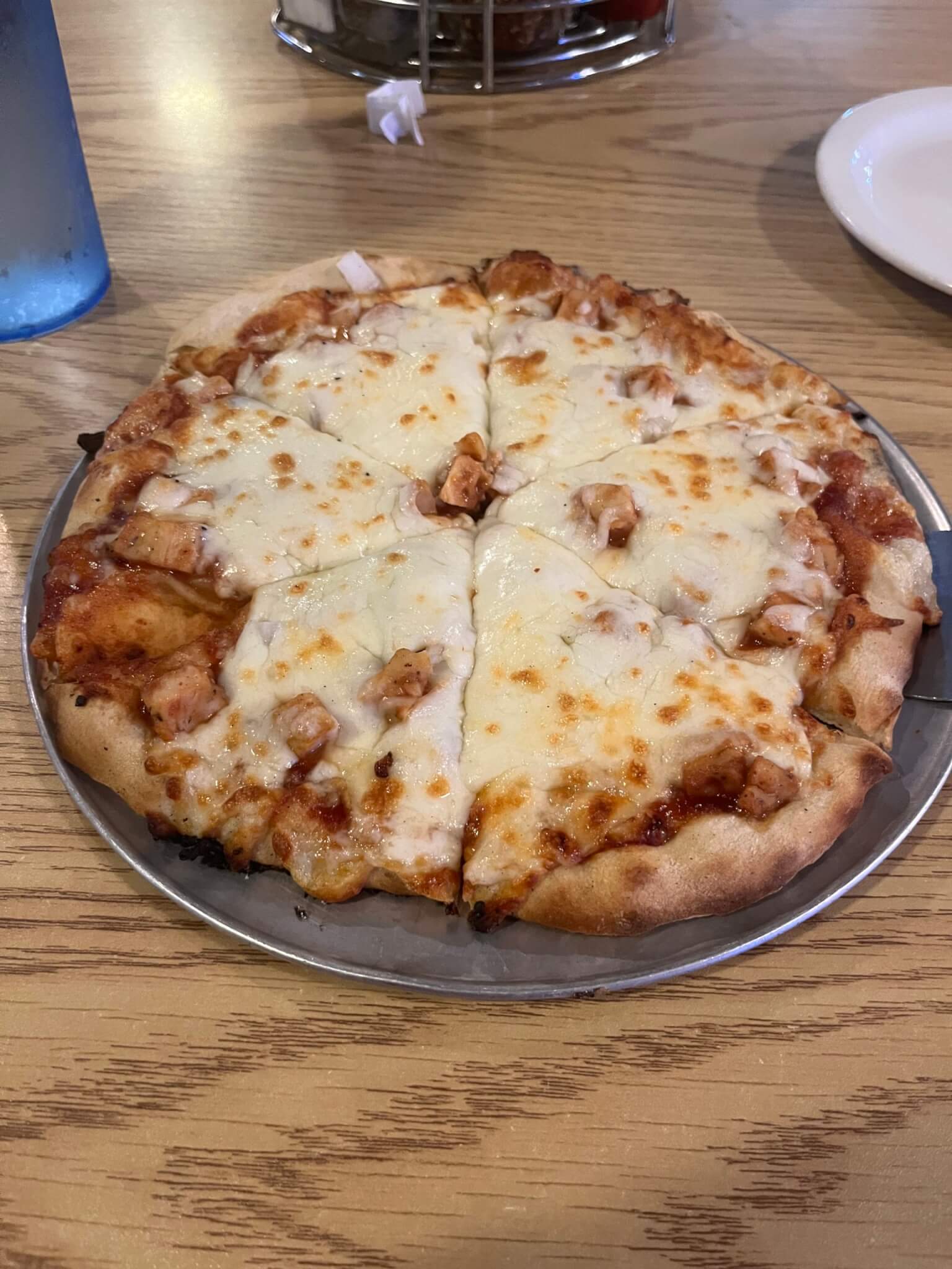 Other pizza restaurants use large chicken slices, but Houston’s on Main does it right by cutting their tender chicken into smaller slices. Finally, they were not overzealous with the onions so I did not end up with the dreaded onion breath after eating.