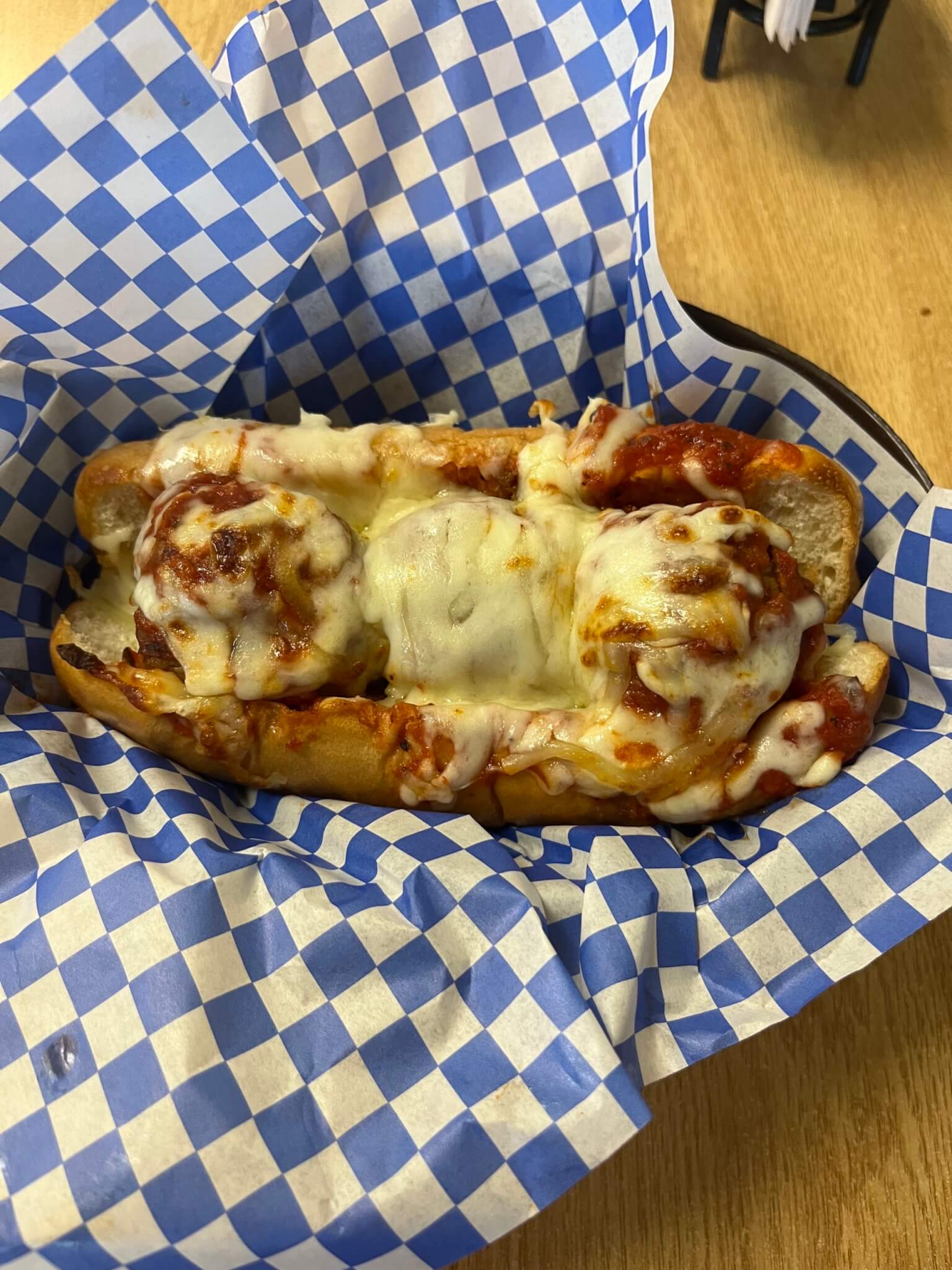 I thought I made a mistake when I did not order a side, but I was wrong. This meatball sandwich made for a filling lunch. The large meatballs offered a subtle flavor burst outside of the meat mixture they were composed of and they did not leave me hungry. The mozzarella cheese formed a solid layer across the meatballs but required a constant amount of chewing to get down. The cheese may not have been the freshest, but it did its job on the sandwich.