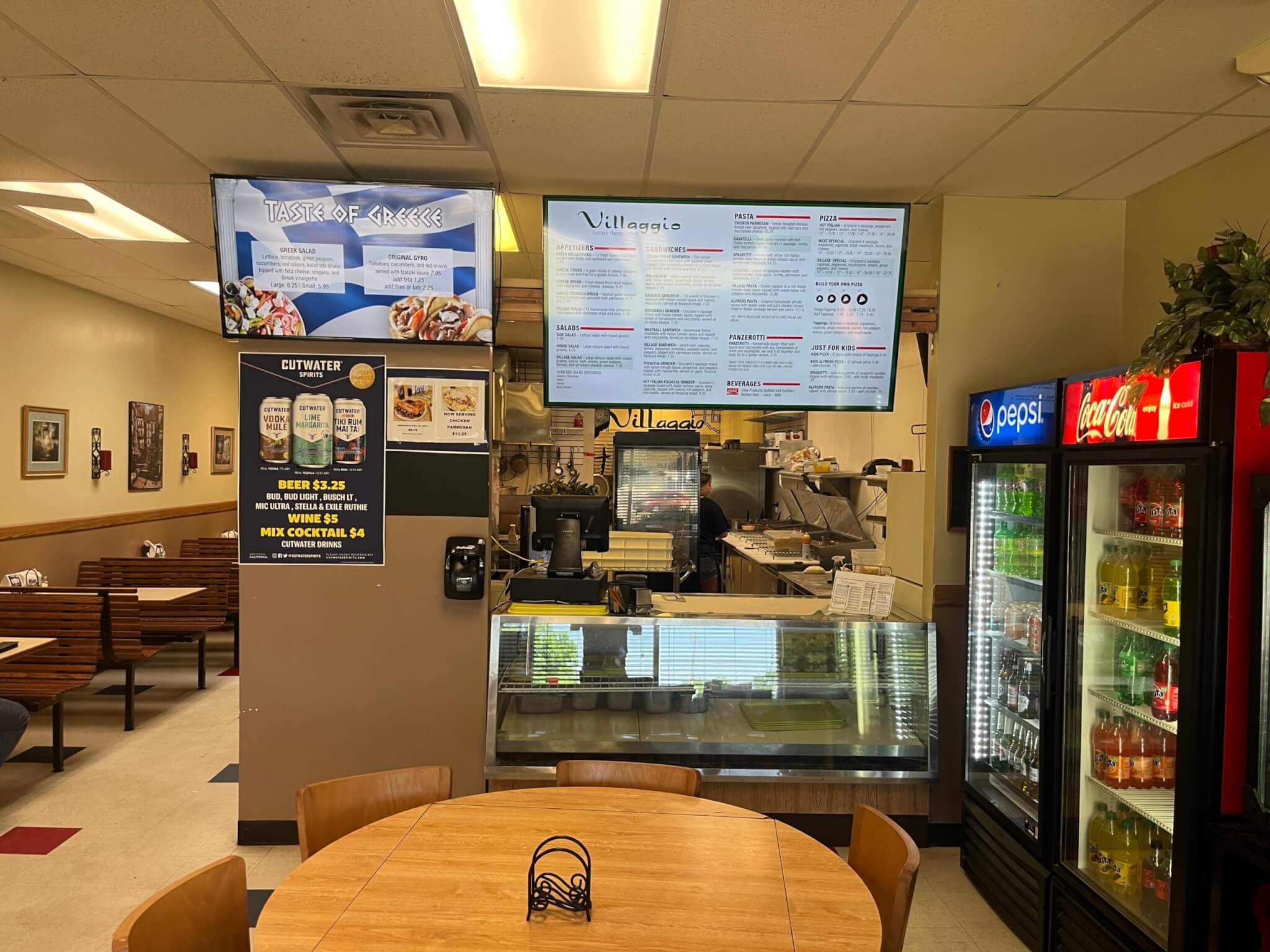 After enjoying the Crouse Cafe, I headed northwest to Norwalk for lunch. The first thing I noticed about Villaggio Italian Restaurant was that it was very warm inside because the air conditioning was broken, but I was not deterred. The second thing I noticed was the Hobby Lobby-esque décor and the Italian scenescapes that covered the walls. Also, it smelled like a pizza place but felt like a Catholic church. Candles lined the wall, and I thought the Midwestern Italian-food restaurant pope could show up at any moment. After grabbing a vintage red Coca-Cola water cup, I was ready to eat.