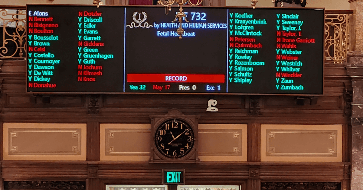 The final vote in the Iowa Senate on the near-total abortion ban, which provides no penalties on women seeking them, and leaves enforcement and discipline of physicians performing them up to the unelected Iowa Board of Medicine. (Photo by Nikoel Hytrek, Iowa Starting Line)