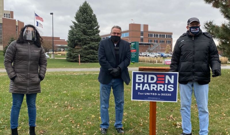 In Waterloo, the two were joined by local businessman Gary Kroeger to discuss the severity of COVID-19, the growing number of cases, and the refusal of the current administration to control the pandemic–and how Biden will do better.