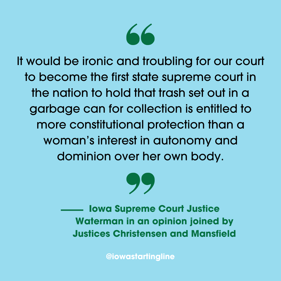 “Today, Iowa Justices correctly ruled that they should not legislate abortion laws from the bench,” she wrote in a longer release. “Government bureaucrats have no business meddling in these decisions.”