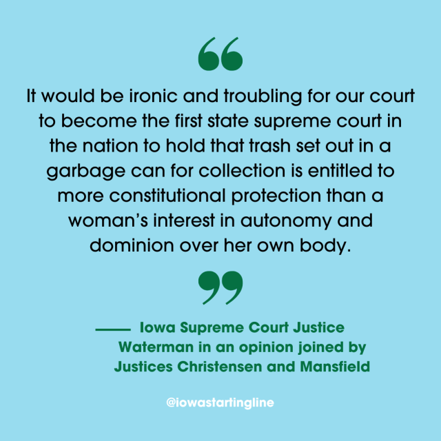 “It’s official—the Iowa Supreme Court kept our reproductive freedom!” tweeted Rep. Eric Gjerde of Cedar Rapids. “I believe in protecting reproductive freedom because every Iowan deserves the right to make their own health care decisions.”