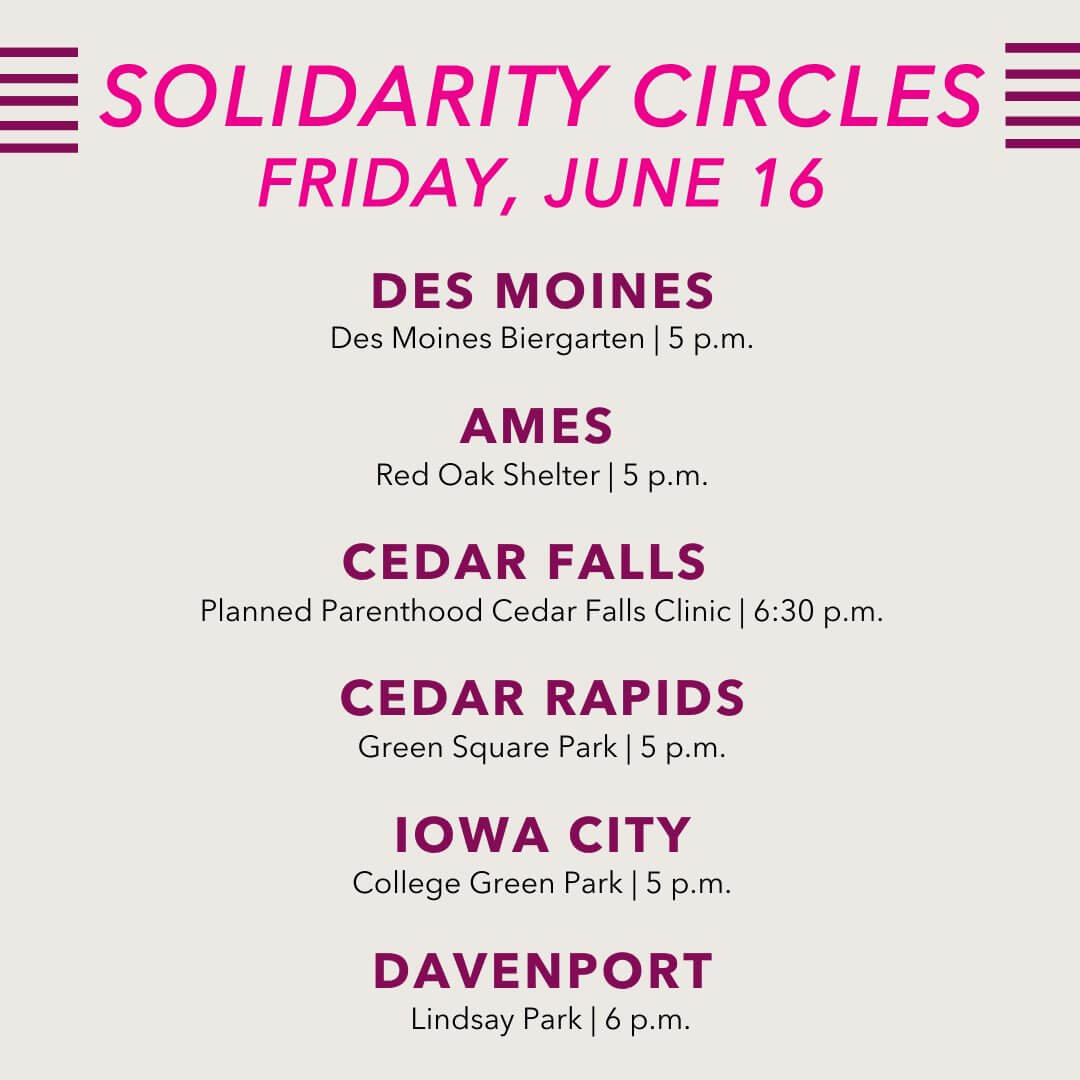 Reproductive justice rallies were scheduled Friday afternoon and evening at locations in central and eastern Iowa.
